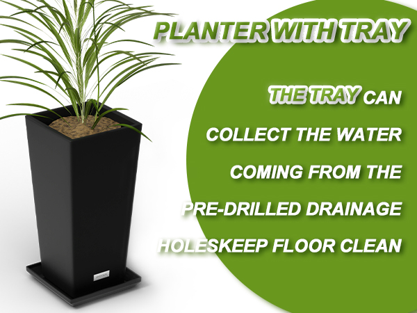 Amazon Com Elevens Tall Planters 30 Inch Tapered Square Planters Garden Flower Pots Large Planter For Patio Indoor Outdoor Planter With Tray Black 2 Pack Patio Lawn Garden